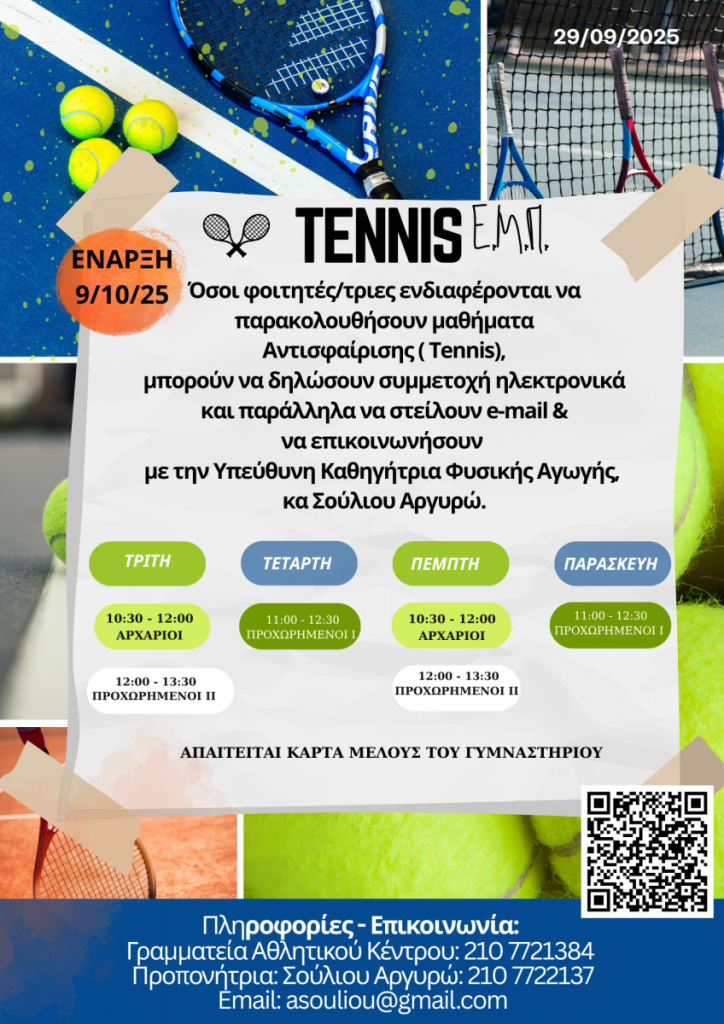 • ΟΡΘΗ ΕΠΑΝΑΛΗΨΗ TENNIS