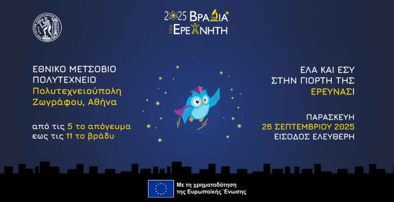 Βραδιά του Ερευνητή στο ΕΜΠ, Παρασκευή 26 Σεπτεμβρίου 2025